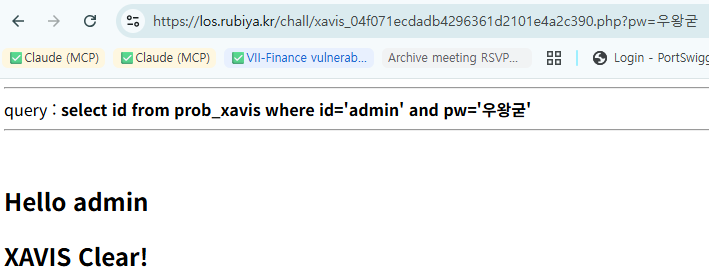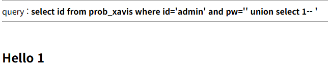 $query = "select pw from prob_xavis where id='admin' and pw='{$_GET[pw]}'";
